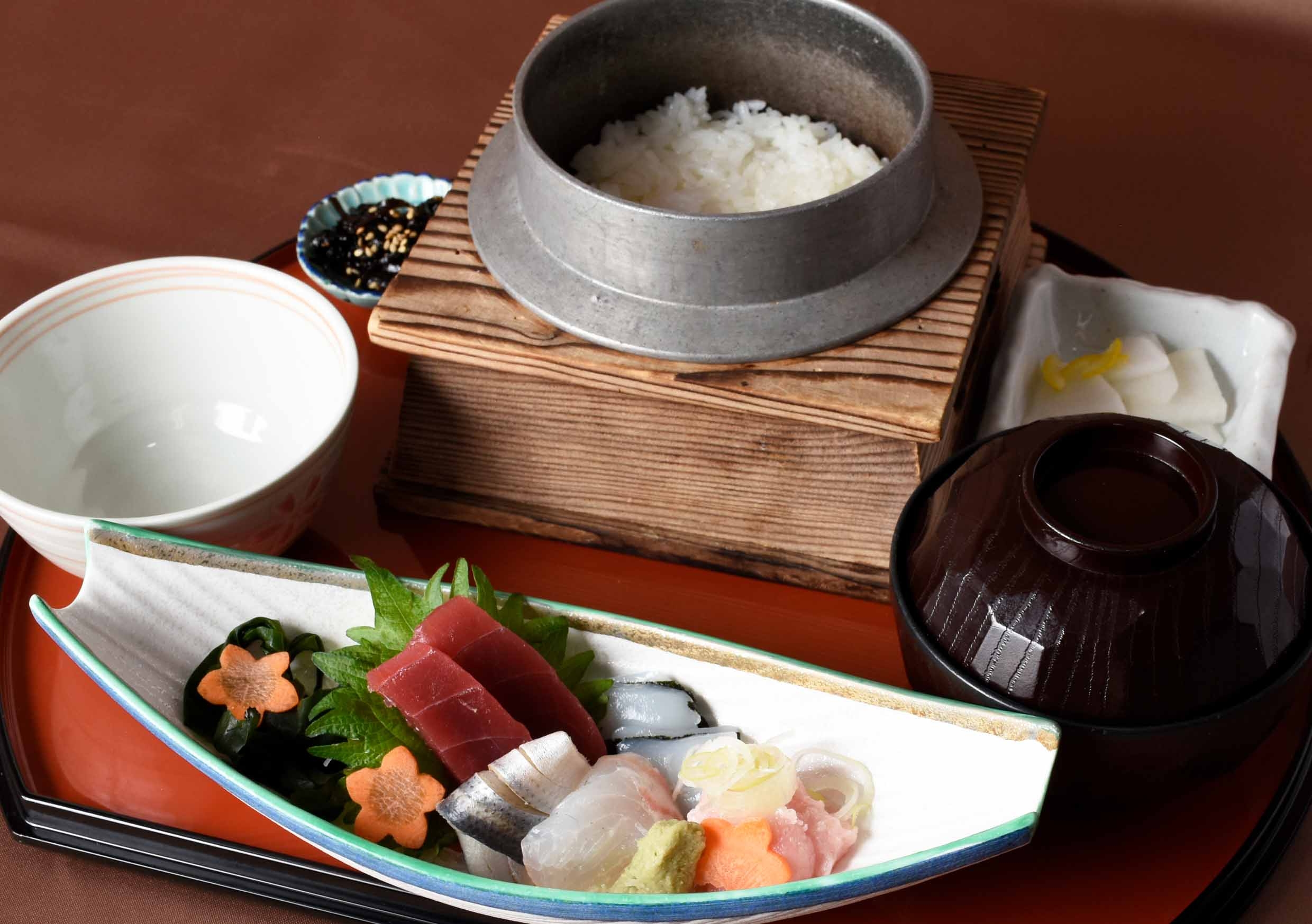 ・羽釜炊き御飯と刺身五種盛り定食 1,180円